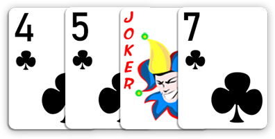 4♣ 5♣ PJ 7♣ - here a printed joker has been used to replace 6♣.